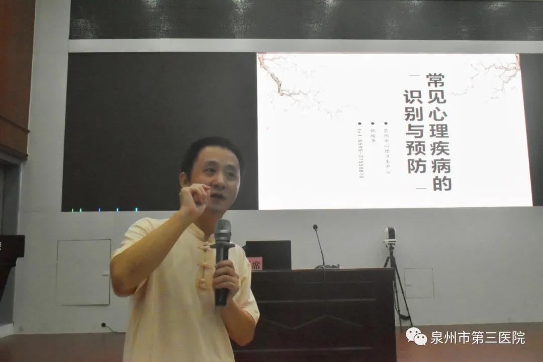 其后倪主任以其渊博的专业知识和丰富的临床实践经验,结合生动的案例娓娓讲述各类常见精神心理疾病,如人格障碍、精神分裂症、抑郁症、双相障碍、神经症、创伤后应激障碍、强迫症、癔症等精神心理疾病的识别与预防调适方法,讲述过程中倪主任不时穿插生动形象的比喻、猴子救鱼、曹操等小故事等,妙趣横生、深入浅出的讲解使得学员们在听讲座过程中不时爆发出笑声与阵阵热烈掌声。课程结束前,倪主任的幽默提问健康与面子哪样重要?获得了学员们热烈回应。倪主任特别强调预防与调适的重要性,教导学员们学习关爱自我功能、合理宣泄与释放、理解、关怀态度来理解对待自我与同伴,并向在场学员们致以爱与健康成长的祝福。