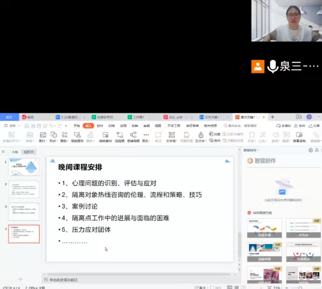 目前,心理援助线上腾讯会议交流、培训已进行十余场,受众达一千余人次,与会者纷纷表示课程干货满满、受益匪浅、意犹未尽。目前线上课程还在紧锣密鼓地进行中。