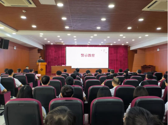 会上集中观看警示教育片,通过以案释法、以案说纪,教育引导党员、职工做到防微杜渐、警钟长鸣。