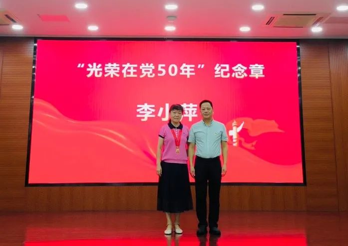 沉甸甸的纪念章承载着50年的忠诚与奉献,党委书记林义川同志代表医院党委向“光荣在党50年”纪念章获得者退休党员李小萍同志表示热烈的祝贺,高度赞扬她半个世纪“坚守信仰、永葆本色”的政治品格,向她为医院发展付出的辛勤努力表示衷心感谢。
