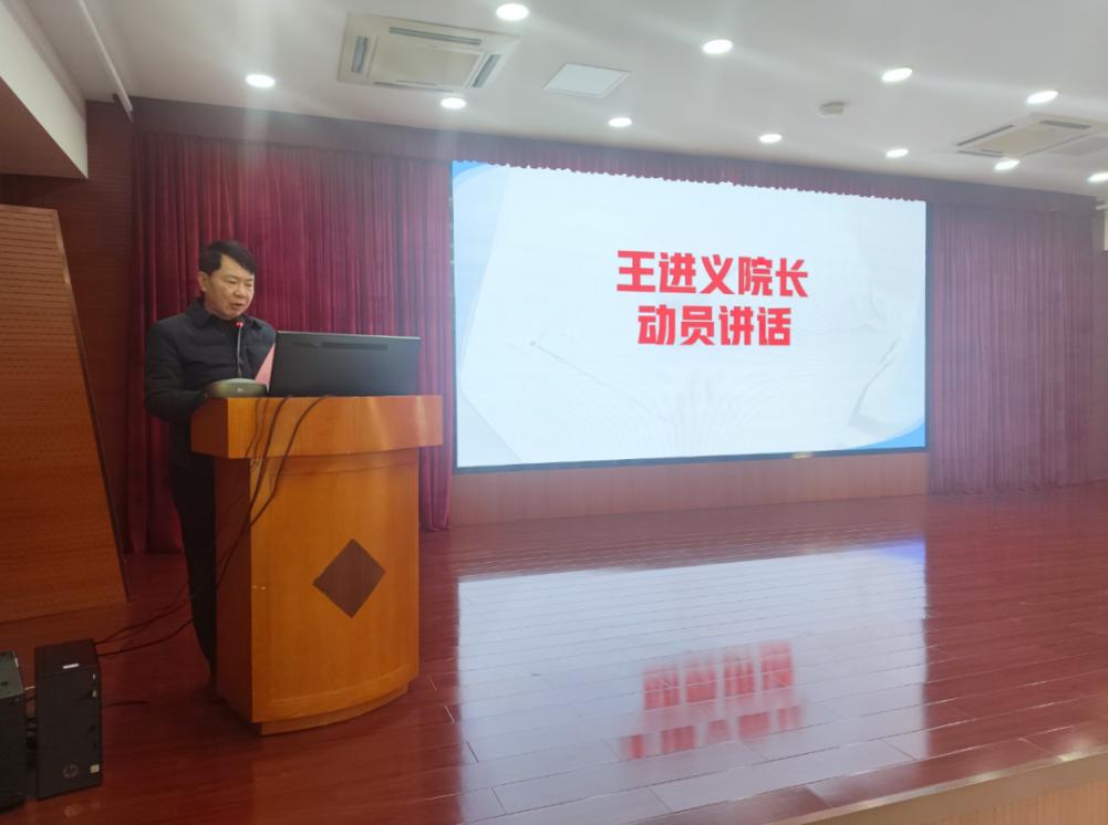 会上,院长王进义同志作动员讲话,强调当前全院上下处在空前团结的状态,大家要齐心协力、全力以赴投入到创建三甲医院的工作中,为医院的美好未来而努力奋斗!三甲评审不仅是对医院整体实力的全面检验,更是医院提升医疗服务质量、优化管理流程的重要契机。同时,他在讲话中介绍了医院具备的基础与优势、面临的挑战与任务,最后部署了下一步的工作重点。