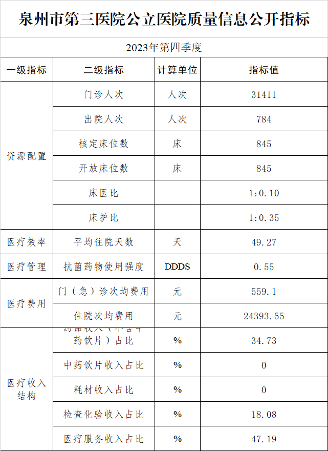 韩国伦理 公立医院质量信息公开指标(2023年第四季度)