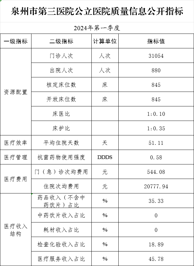 韩国伦理 公立医院质量信息公开指标(2024年第一 季度)